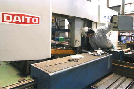 加工前の鋼材は、商社や鋼材販売業者から仕入れます。鋼材は決められた長さで販売されているので、ムダなく(歩留まり良く)使えるよう綿密な計算を行いコストを削減します。