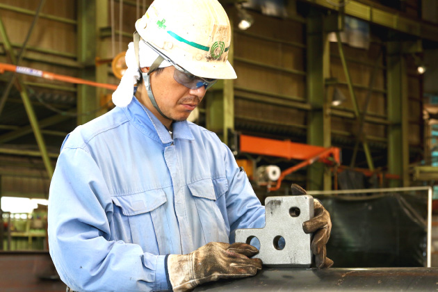 加工が終わった部材を組立し、サイズや部品の種類・寸法位置などが合っているかを確認する作業を、鉄鋼業界では「組立検査」と呼んでいます。不具合が発見された場合は、この時点で修正します。
