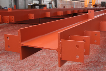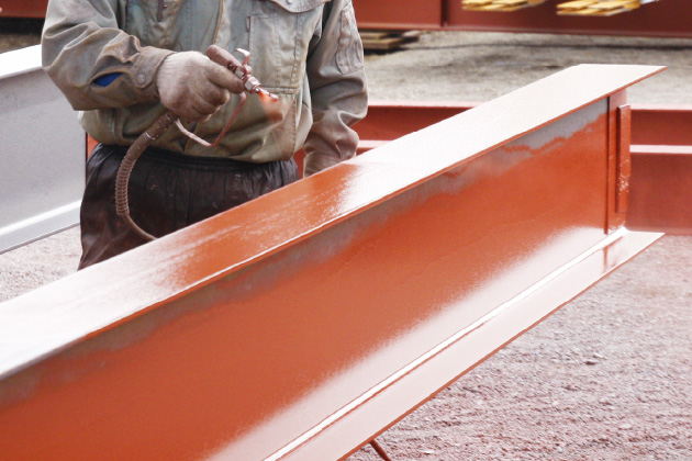 検査をクリアしたら、鋼材の表面にはサビ止め塗装が施されます。出荷する際の塗装色はグレーか赤色ですが、これは最終的に上塗りされる色がより映える方を選びます。