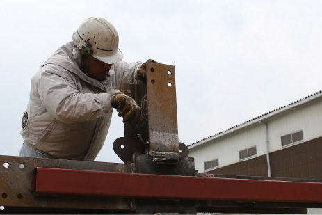 建築現場に納品した鉄骨を組み立てる作業を、「建方(たてかた)」と呼んでいます。実際の作業は外部の鳶職人さんに委託しますが、当社では建方終了までの現場管理を担当します。